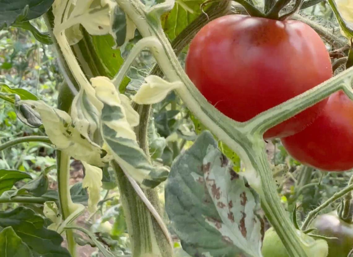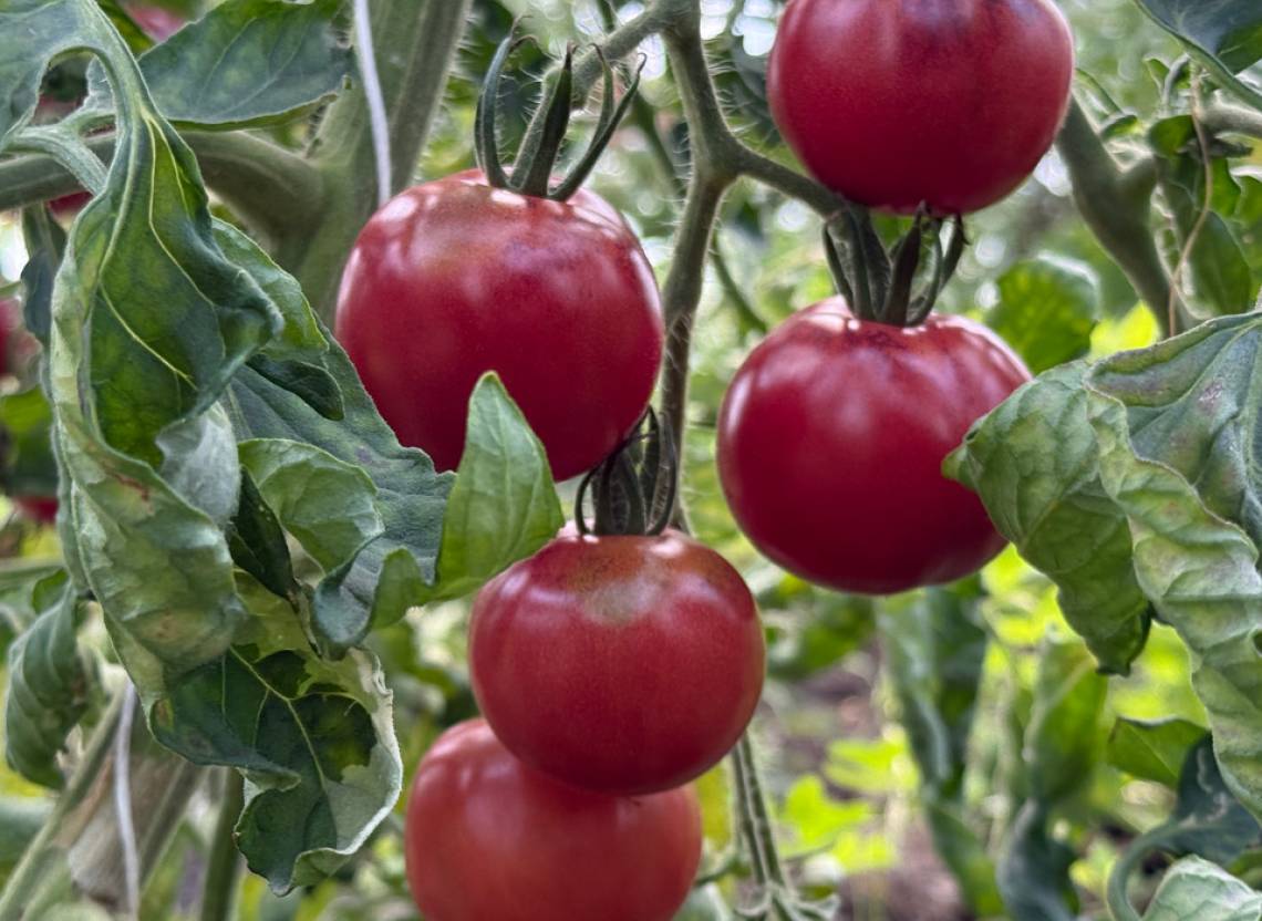 Plante délicate aux petites feuilles panachées. Un véritable régal pour les yeux. La plante est moins éclaircie que les tomates à feuilles vertes. Une culture protégée, par exemple contre un mur ensoleillé, est recommandée pour cette variété. Les tomates surprennent par leur goût extrêmement doux et sucré. Les fruits séduisent également par leur peau brillante. Malgré son éclat, celle-ci n'est pas ferme. Le rendement est bon. Dans l'assiette, les autres tomates font pâle figure à côté de cette beauté éclatante. Elle présente une touche de couleur violette sur les épaules. Son goût exotique et frais et sa consistance crémeuse sont uniques.