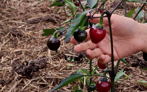 Die Sorten „Black Hungarian“ und „Rote Kirsch-Chili“ wurden 2009 gekreuzt, die Kreuzung wird seitdem selektiert. Die violetten Blüten und die Blätter ähneln „Black Hungarian“, die Samenzahl eher der der „Roten Kirsch-Chili“. Das gute Aroma beider Ausgangssorten ist erhalten geblieben. Die Chili "Black Heart" ist als Amateursorte registriert.