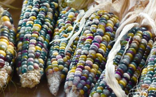 Paradise Rainbow macht seinem Namen alle Ehre: Die Körner der mehrfarbigen Kolben sind blau, grün, gelb, weiß, pink, rot, orange, violett, schwarz und grau. Auch zweifarbige Körner kommen vor. Der Mais wird speziell für die Mischkultur mit Stangenbohnen und Kürbis gezüchtet, in Anlehnung an die Milpa in Mittelamerika.