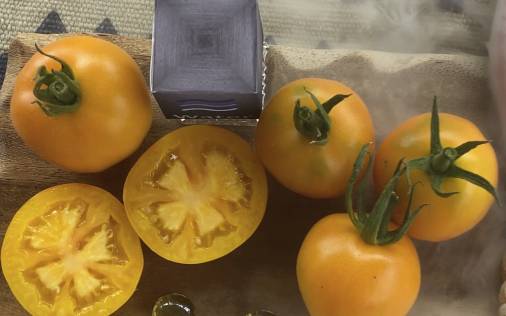 Sehr aromatische, süß-saftige Cocktailtomate. Die leuchtend gelben Früchte hängen in schönen kurzen Trauben. Robuste und wüchsige Pflanze mit lockerem Laub und hoher Feldresistenz gegenüber der Kraut- und Braunfäule (Phytophthora infestans). Die Sorte ist frühreif und hat ein Fruchtgewicht von ca. 20g.