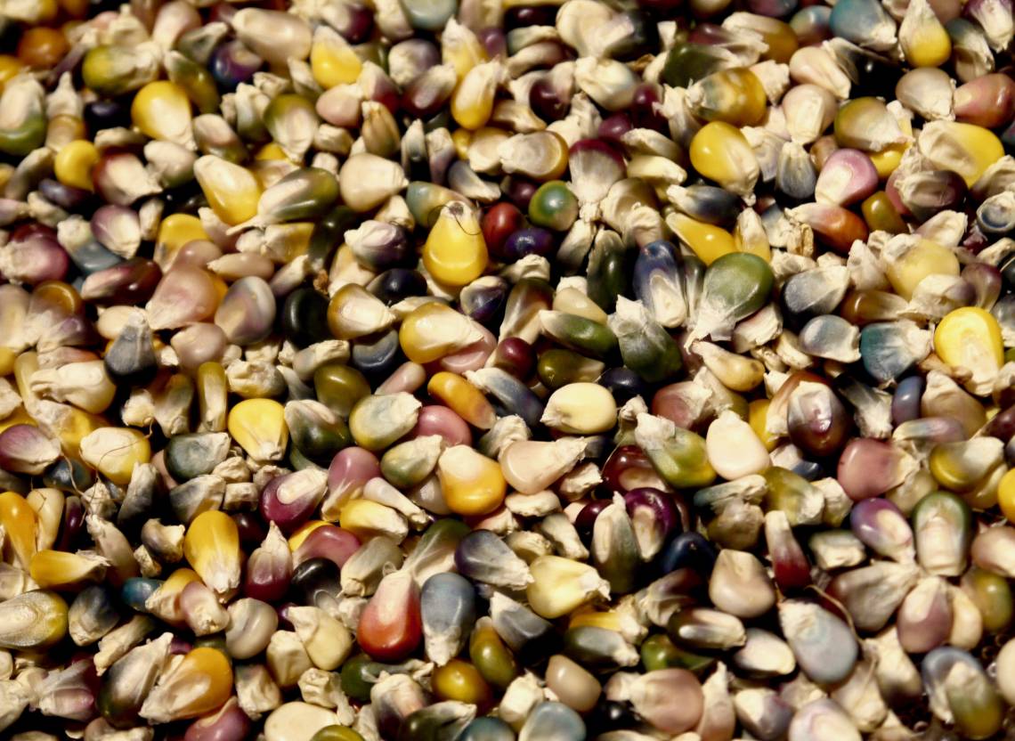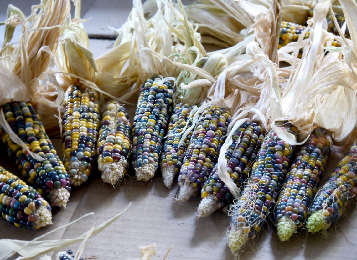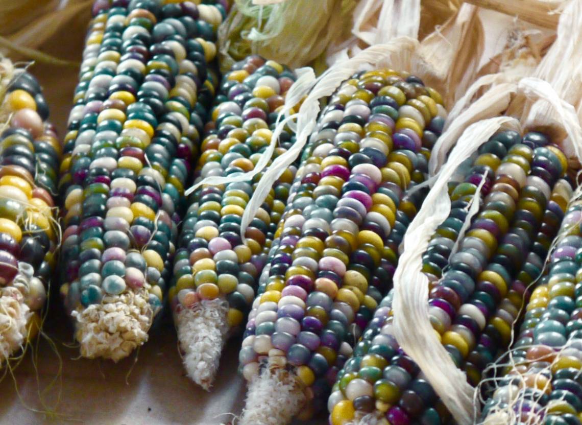 Paradise Rainbow lives up to its name: the grains of the multicoloured cobs are blue, green, yellow, white, pink, red, orange, purple, black and grey. Two-coloured grains also occur. The maize is specially bred for mixed cultivation with pole beans and pumpkin, following the milpa in Central America.