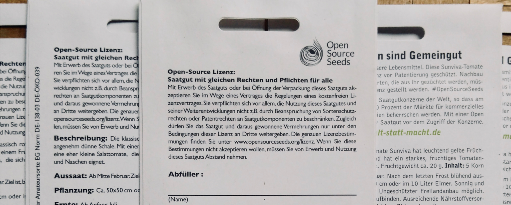 Licencia de código abierto para semillas - Texto para el embalaje