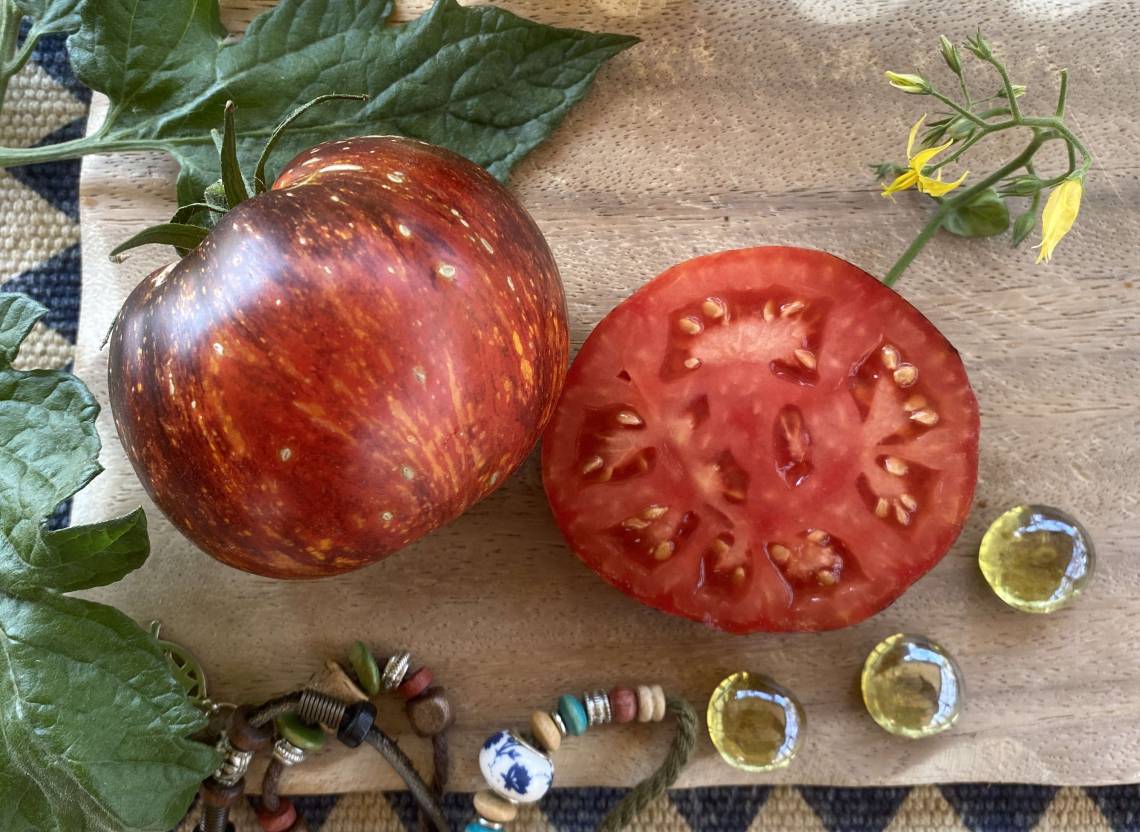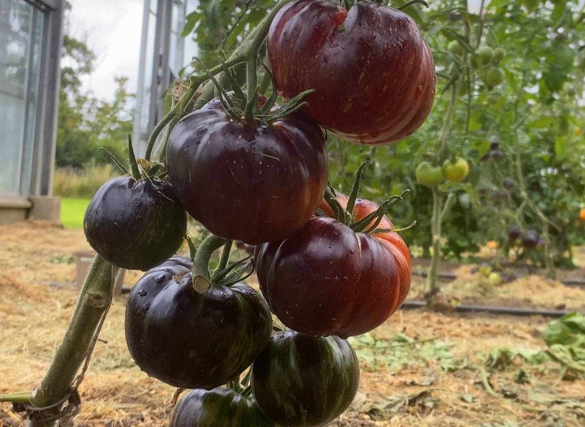 Die Pflanzen sind robust, starkwüchsig und ertragreich. Perfekt für den Nordeuropäischen Anbau. Pflanze sie ins geschützte Freiland oder für mehr Ertrag in ein Gewächshaus. Ein sonniger Balkon oder Terrasse sind bei großen Töpfen kein Problem. Die Früchte sind herausragend, schwarz mit gelb-orangen Flecken, die wie Streifen auf der Tomatenfrucht liegen. Geschmacklich eine echte Tomate! Tolles Aroma, herrlich süß und eine ausgewogene Säure.